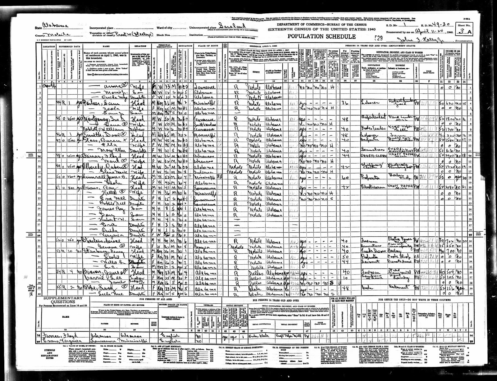 | 1940 US Federal Census - Hamburg, Ashley, Arkansas, USA |